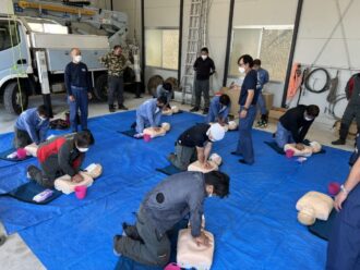 本日、救命救急講習を清水(営)、山田(営)、安芸(営)、高知本店の伐採班で講習しました。